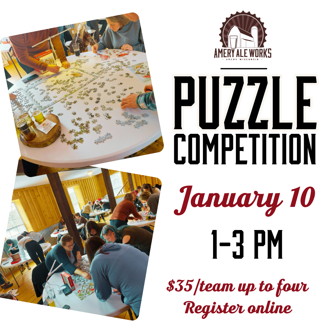 Most of us love to leisurely build puzzles, but have you ever thought about turning up the heat and competing in a fast paced, team build puzzle competition? Yes or No, it’s time to call up your puzzle buddies and make your team of 2-4 so you can enter the puzzle building competition being held at Amery Ale Works on January 10th! During this competition we’ll see who can build a 500 piece puzzle the fastest.
